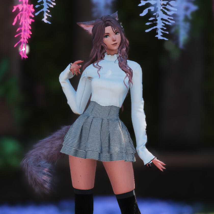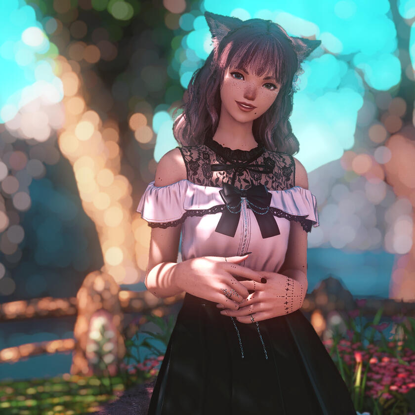 Aelene was raised in a small tribe in gridania by her mother and grandmother. Teasingly they both would tell her, "you are too restless, child. One would think you are a seeker of the sun, not a keeper of the moon." But Aelene would not settle. Instead she often would be found trouncing through meadows with the sylphs and climbing trees with the moogles. At the age of thirteen the miqo’te stumbled across a travelling troupe of dancers set to perform at a party being held in the lavender beds as they rehearsed. Aelene became enchanted by their tulle and silk, following them around like a kitten until they left the shroud. At the age of eighteen Aelene mustered up the courage to leave the shroud to join that troupe, head held high waving farewell to her mother and grandmother with promises to return every autumn.