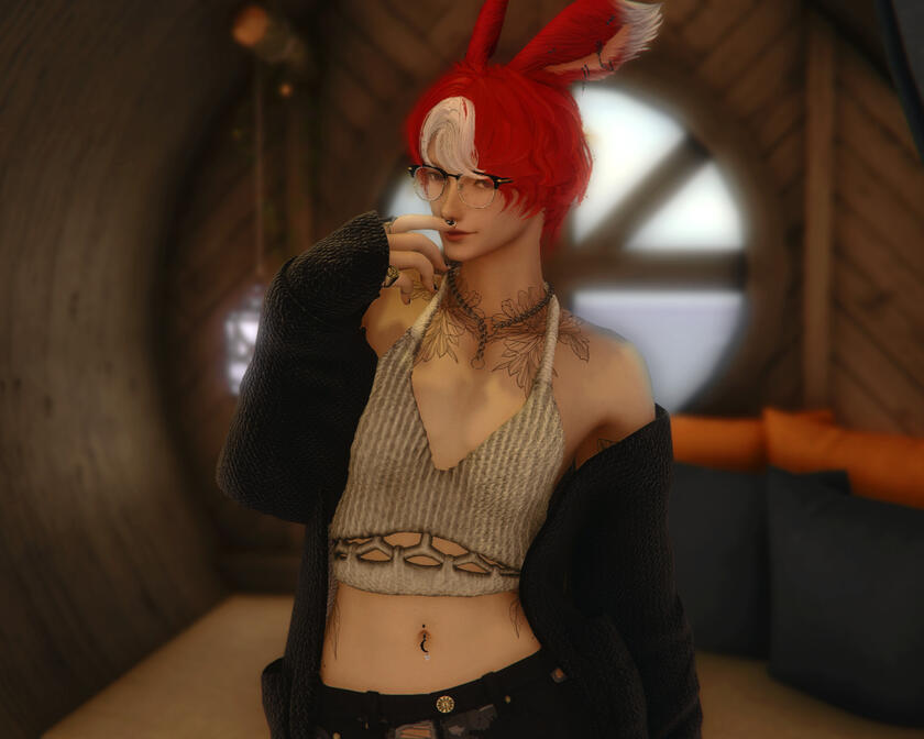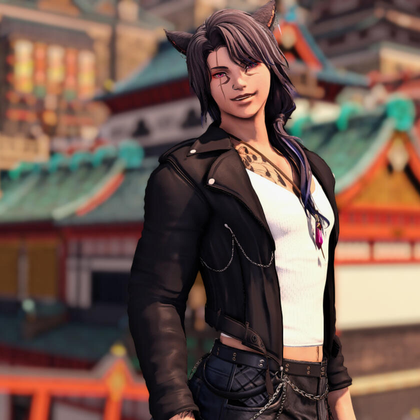 born to a tribe of viera that hail from daitenz - another island a part of the hingan archipelago that contains kugane - daichi spends his life wandering the star. he peddles the wares of his people, trading goods not available to the tribe locally and collecting stories to bring back to the kits. his tribe is composed of highly skilled artisans, artists, and musicians, blessed by their kami with an affinity to all things creative. he lives by simple means, his pockets often too light to enjoy the expense of fineries, and that's fine by him. though he can be found anywhere on the star, he often stays in a cabin in limsa near the ocean that is free for any wanderers of his tribe to house themselves. daichi is often seeking out means of entertainment, hating being bored even the slightest bit. he often can be found in the middle of the crowd at concerts, checking out hole in the wall taverns, or simply people watching in major city hubs.